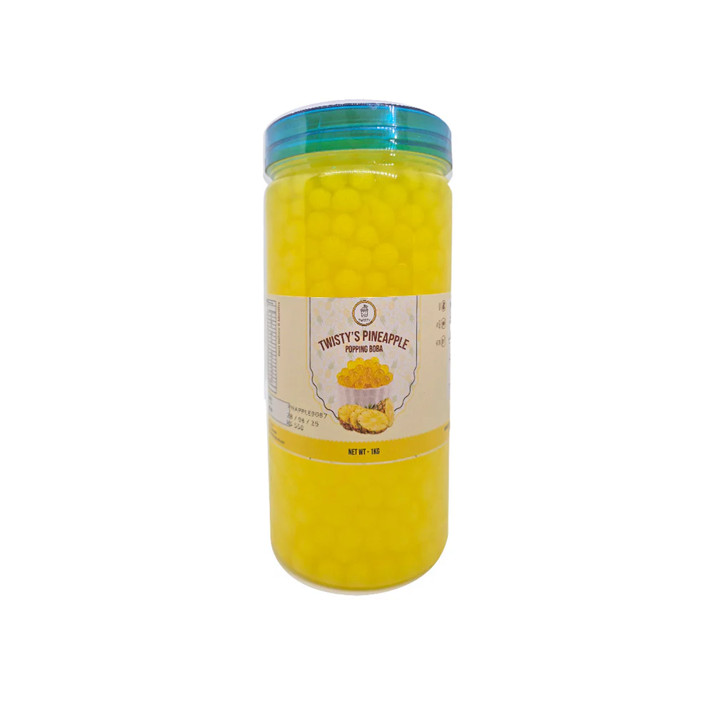 Pineapple Popping Boba, a burst of fruity flavor in every bite! These vibrant, translucent spheres are filled with a delicious pineapple-flavored juice that bursts with tropical sweetness when bitten into, adding a delightful pop to your favorite beverages and desserts. Perfect for enhancing the taste and visual appeal of drinks like bubble tea, cocktails, lemonades, and more, our Pineapple Popping Boba is a must-have addition to any beverage menu or home kitchen.